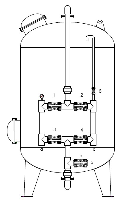 4:正洗排放閥       5:出水閥            6:排氣閥